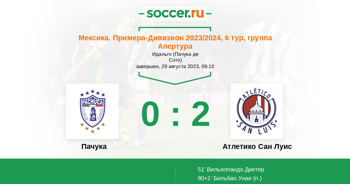 Протокол матча Пачука против Атлетико Сан Луис