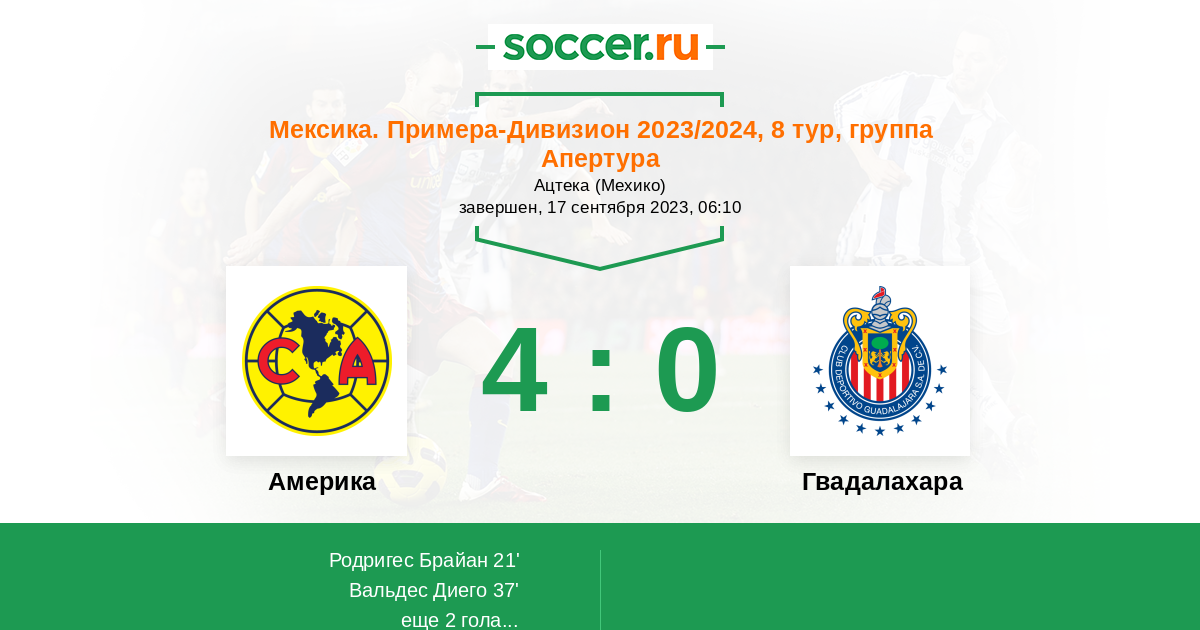 21' (1:0) Родригес Брайан (7) (Киньонес Хулиан (33))