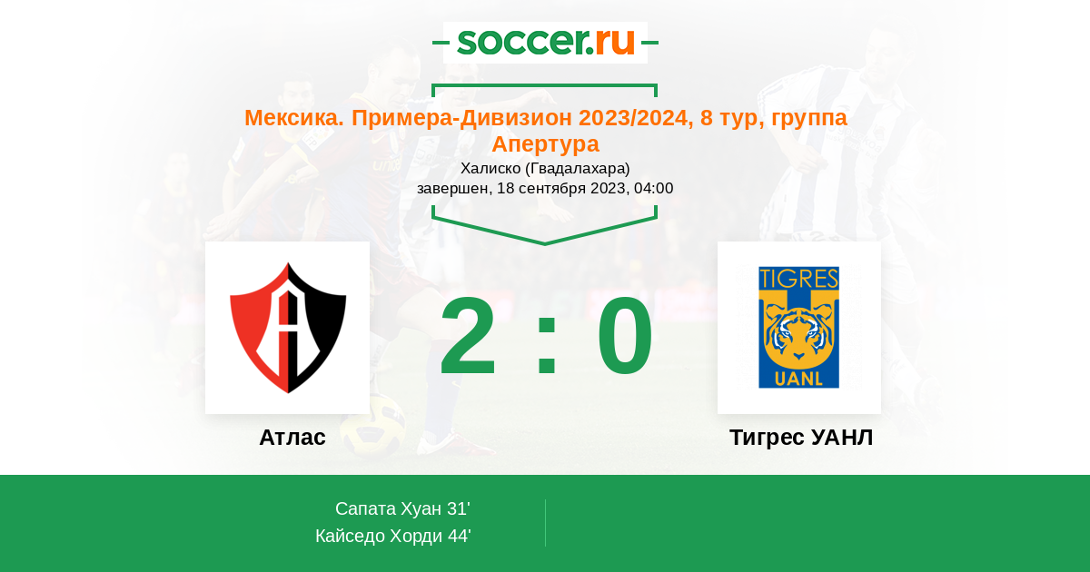 Протокол матча Атлас против Тигрес УАНЛ