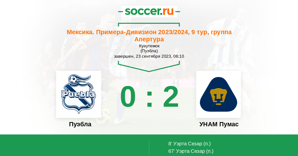 Протокол матча Пуэбла против УНАМ Пумас