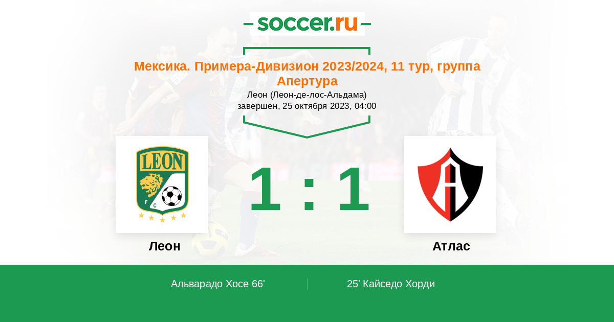 Протокол матча Леон против Атлас