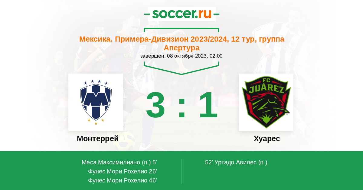 Протокол матча Монтеррей против Хуарес