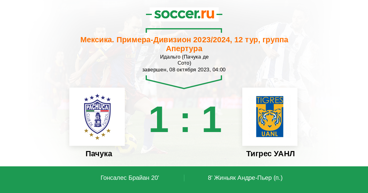 Протокол матча Пачука против Тигрес УАНЛ