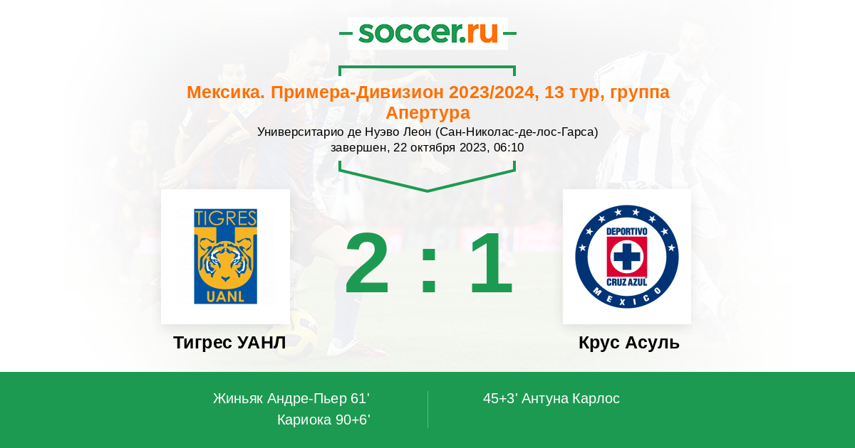 Протокол матча Тигрес УАНЛ против Крус Асуль
