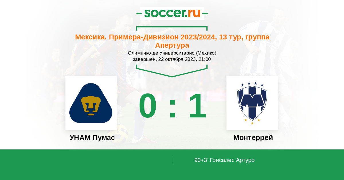 Гол90+3' (0:1) Гонсалес Артуро (21) (Ромо Луис (27))