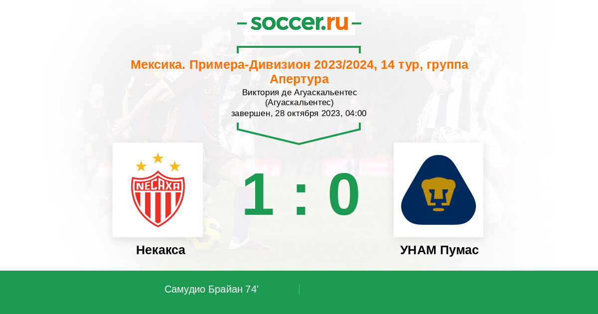 Протокол матча Некакса против УНАМ Пумас