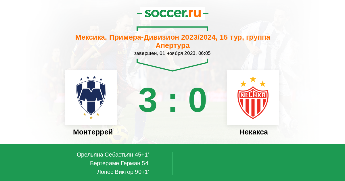 Протокол матча Монтеррей против Некакса