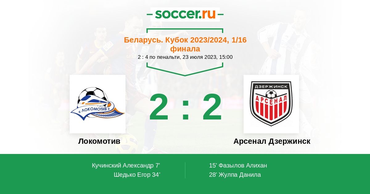 Протокол матча Локомотив против Арсенал Дзержинск