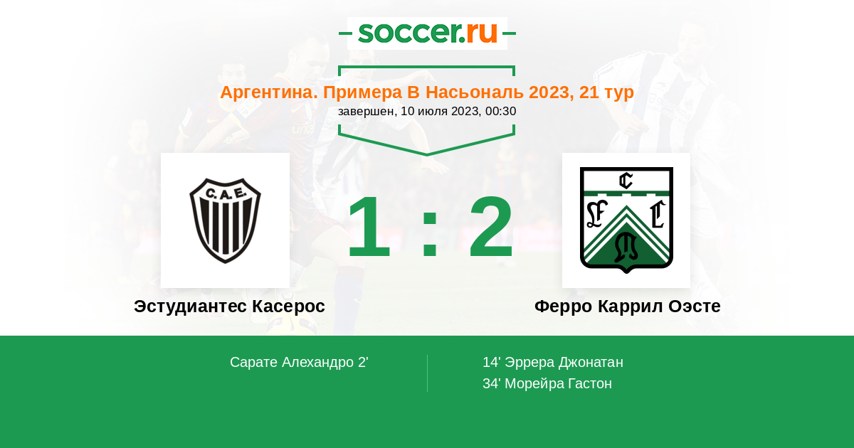 Протокол матча Эстудиантес Касерос против Ферро Каррил Оэсте