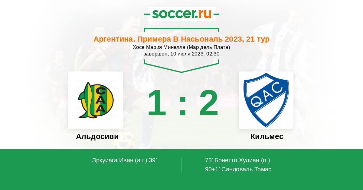 Протокол матча Альдосиви против Кильмес