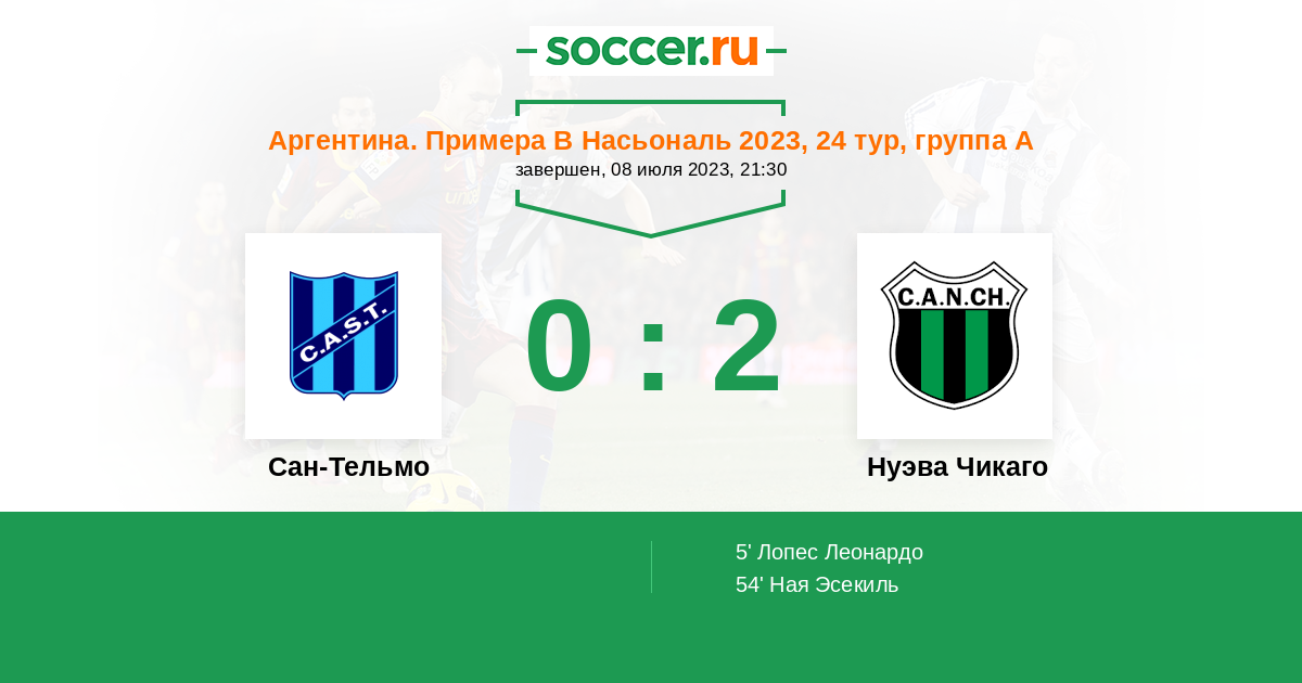 Протокол матча Сан-Тельмо против Нуэва Чикаго