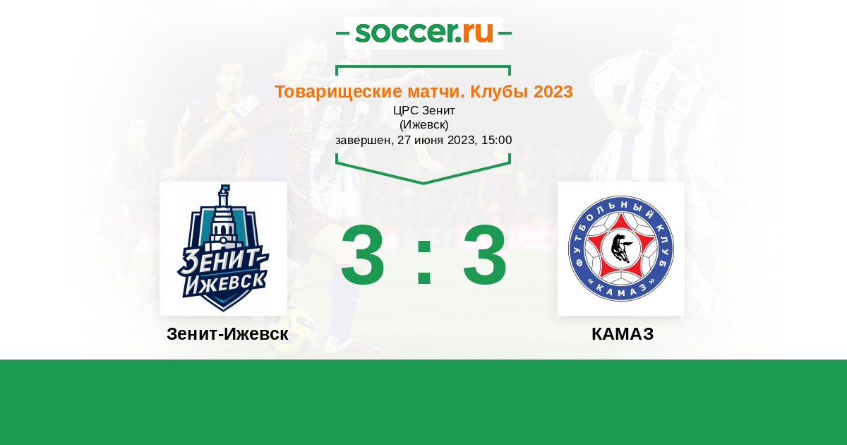 Товарищеские матчи. Клубы 27.06.2023 Зенит-Ижевск Логотип футбольный клуб Зенит-Ижевск 3:3 Логотип футбольный клуб КАМАЗ (Набережные Челны) КАМАЗ