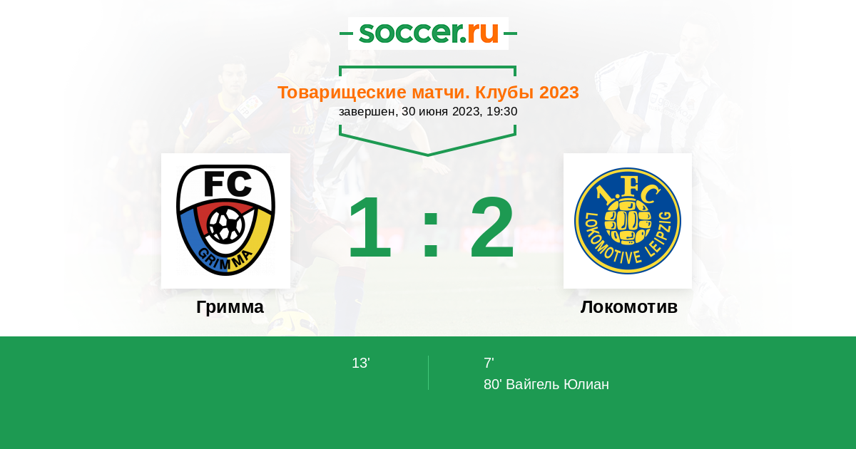 Протокол матча Гримма против Локомотив
