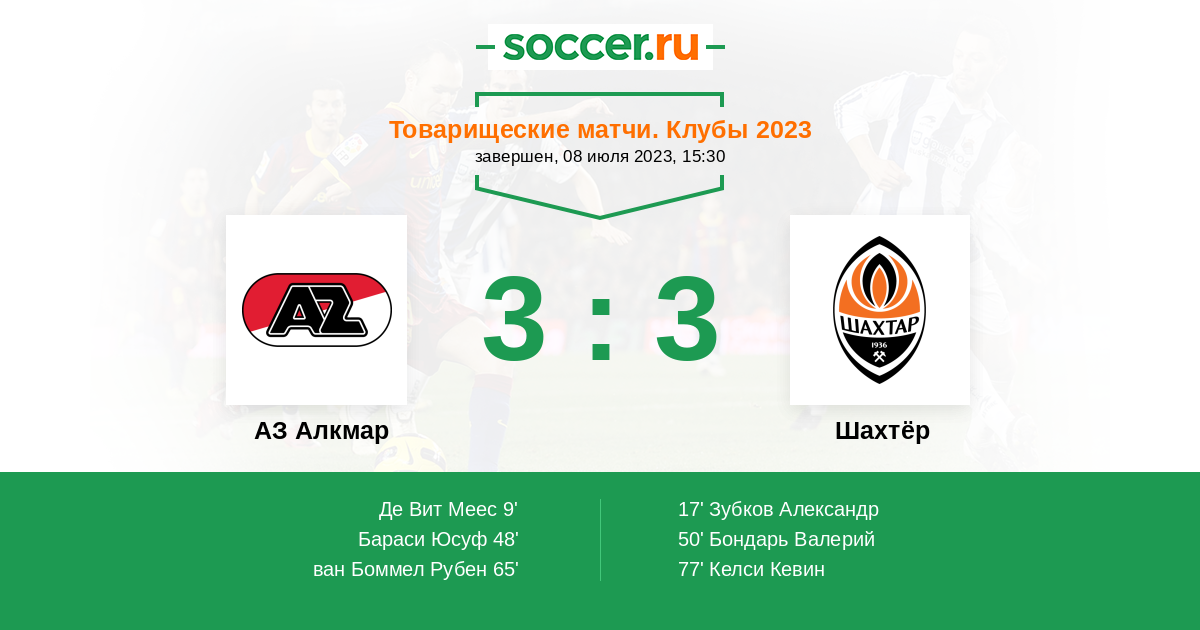Протокол матча АЗ Алкмар против Шахтёр