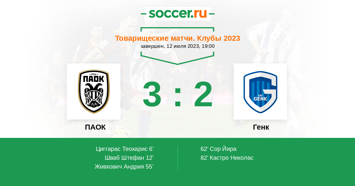 Протокол матча ПАОК против Генк