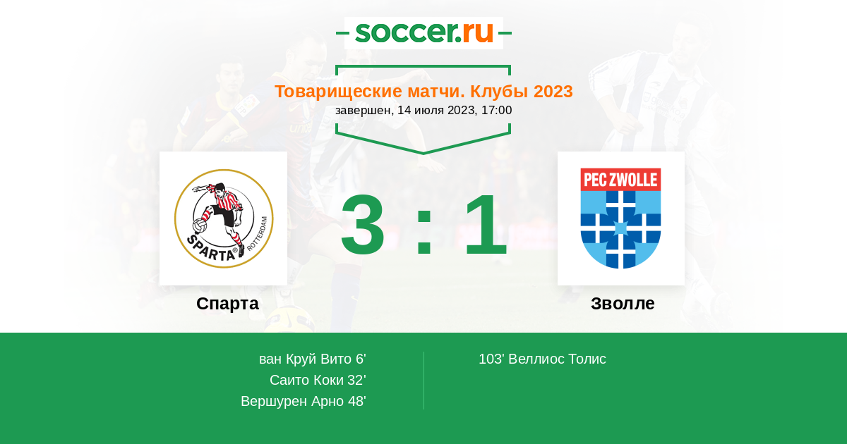 Протокол матча Спарта против Зволле
