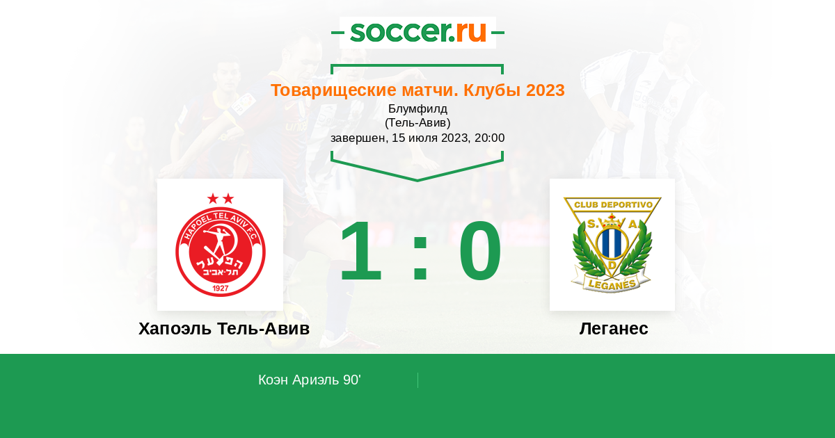 Протокол матча Хапоэль Тель-Авив против Леганес