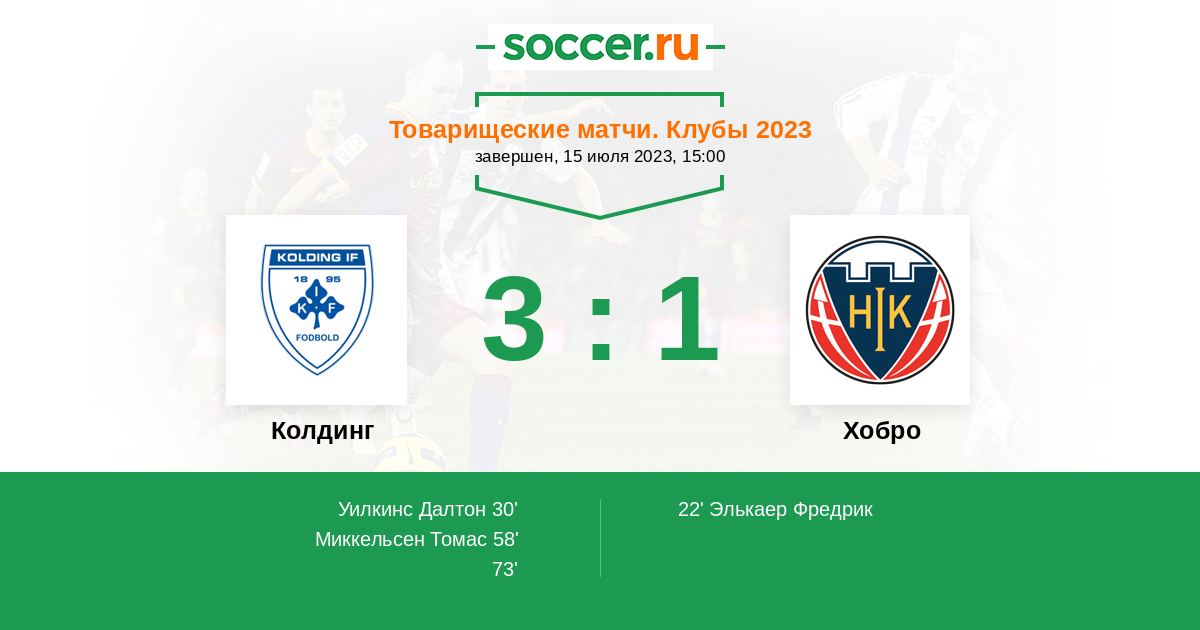 Протокол матча Колдинг против Хобро
