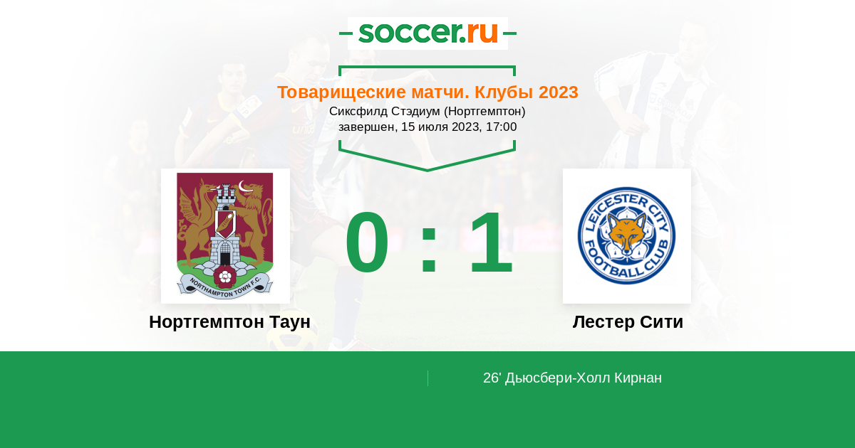 Протокол матча Нортгемптон Таун против Лестер Сити