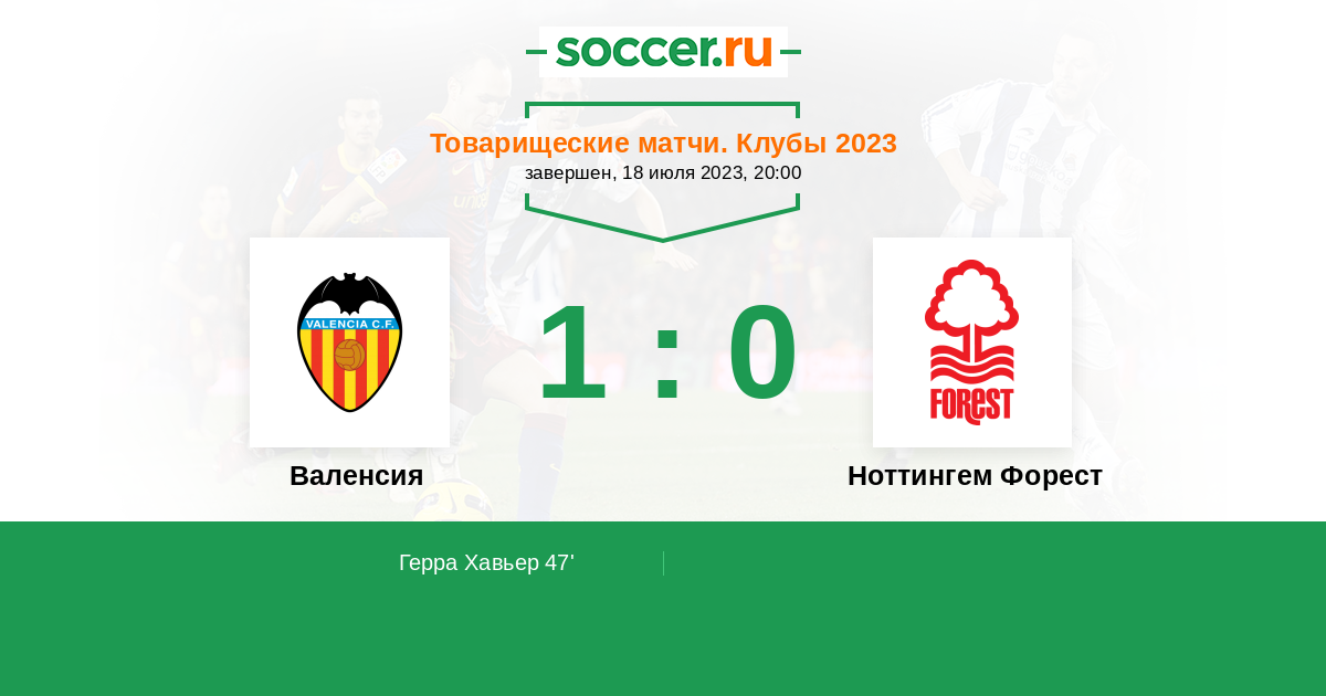 Протокол матча Валенсия против Ноттингем Форест
