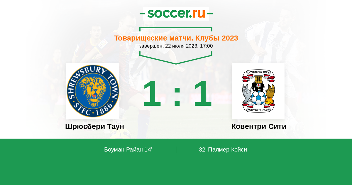 Протокол матча Шрюсбери Таун против Ковентри Сити