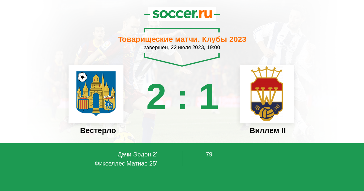 Протокол матча Вестерло против Виллем II