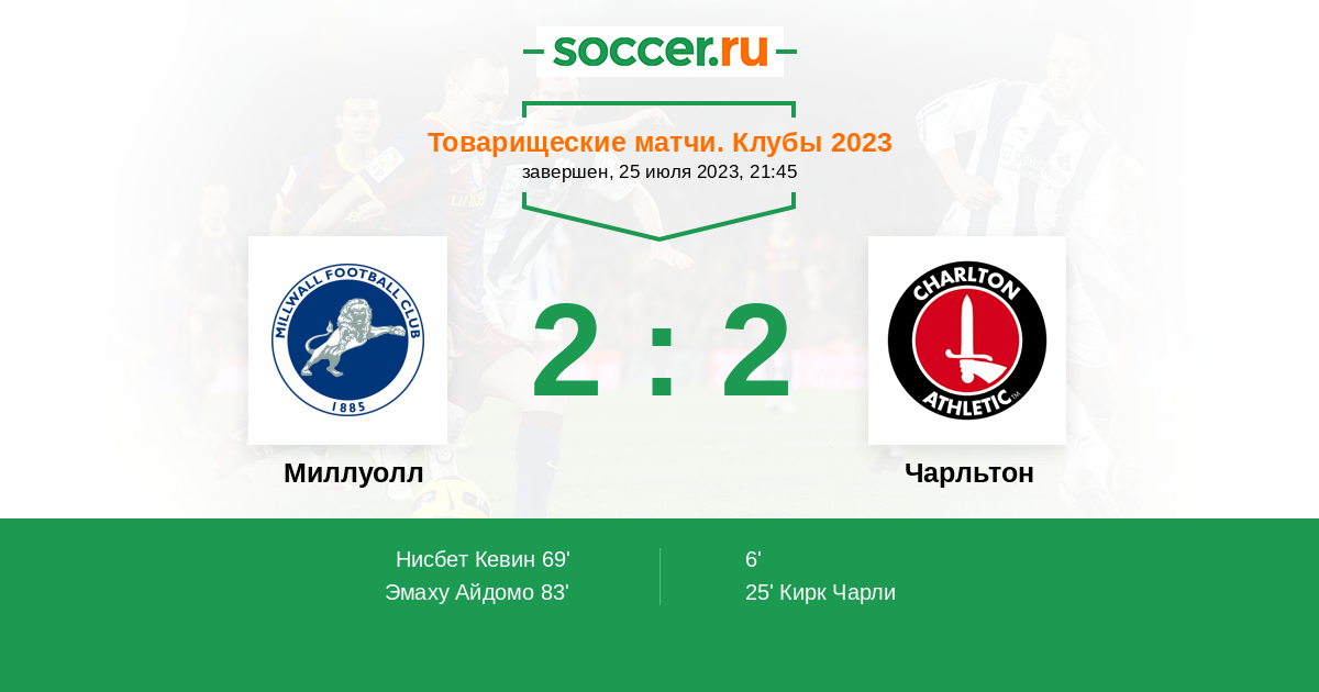 Протокол матча Миллуолл против Чарльтон