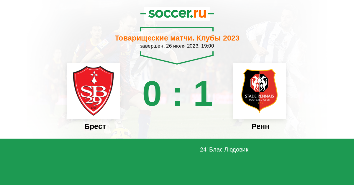 Протокол матча Брест против Ренн