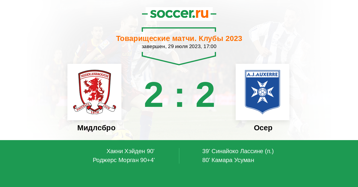 Протокол матча Мидлсбро против Осер