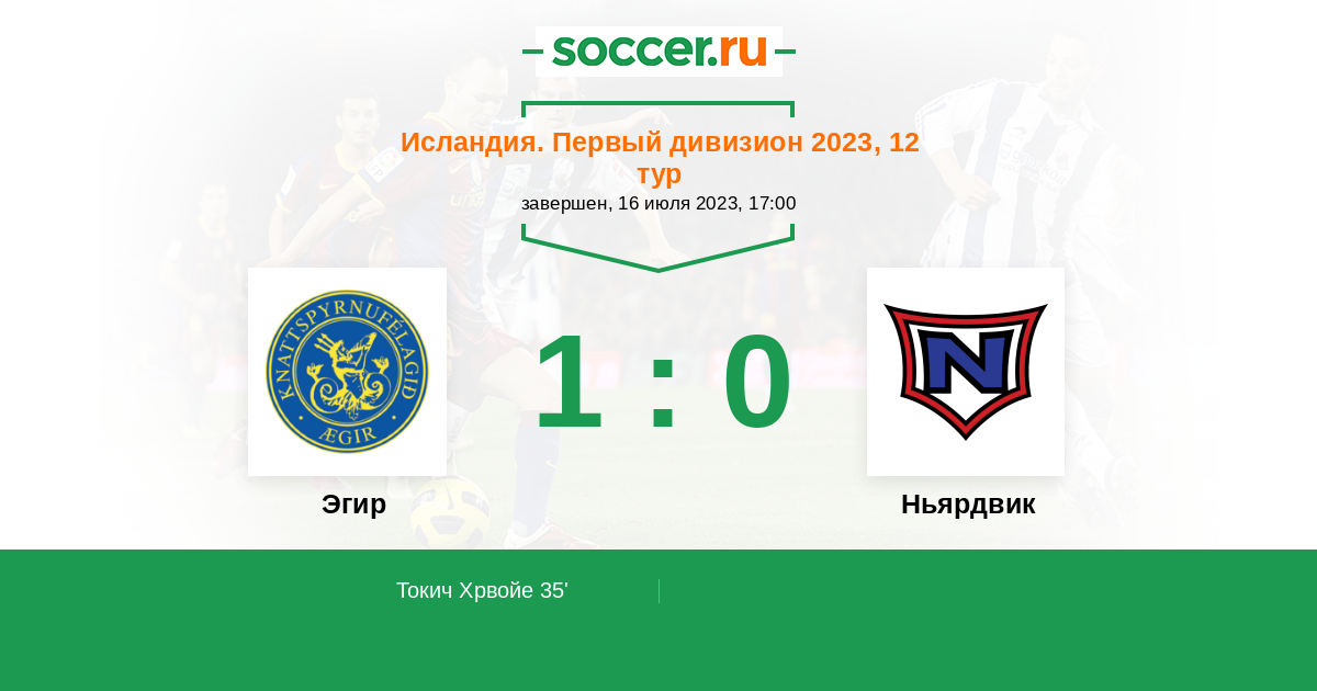 Протокол матча Эгир против Ньярдвик