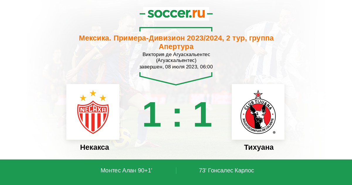 Протокол матча Некакса против Тихуана