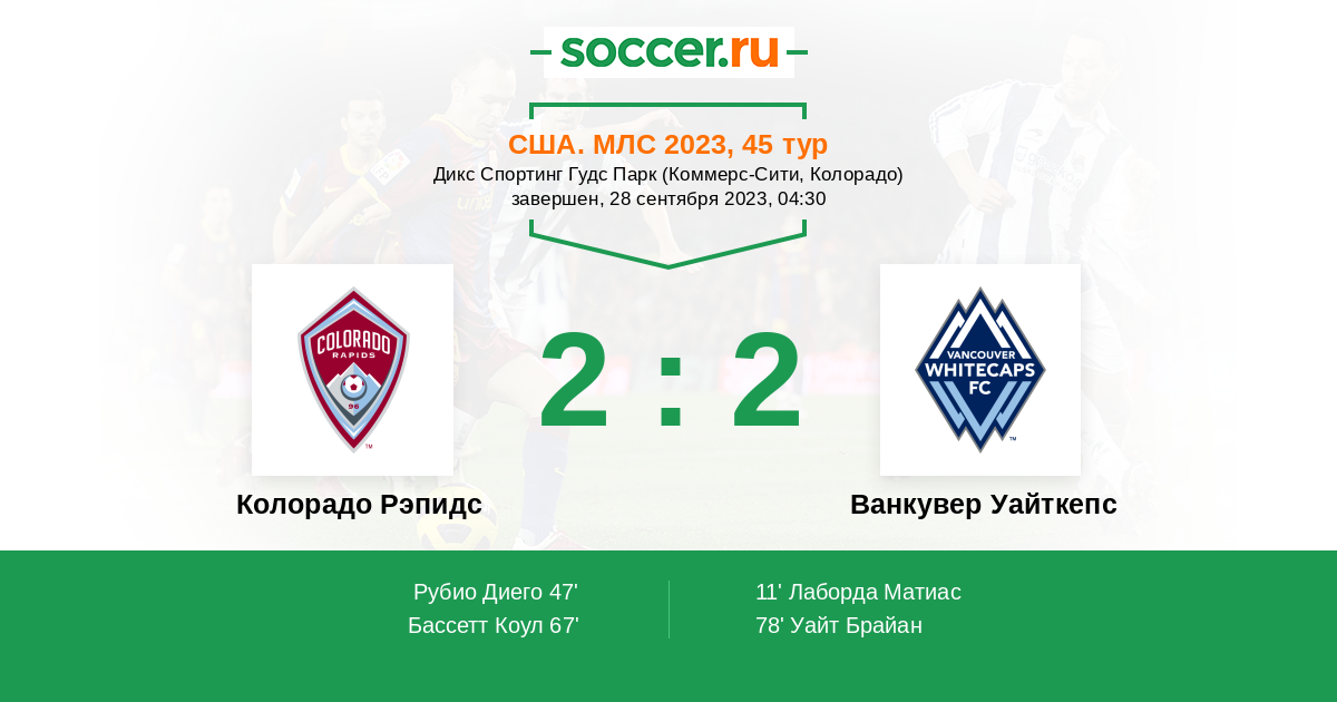 Протокол матча Колорадо Рэпидс против Ванкувер Уайткепс