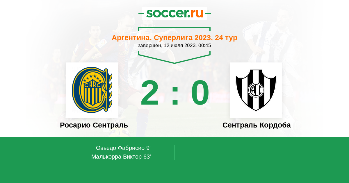 Протокол матча Росарио Сентраль против Сентраль Кордоба