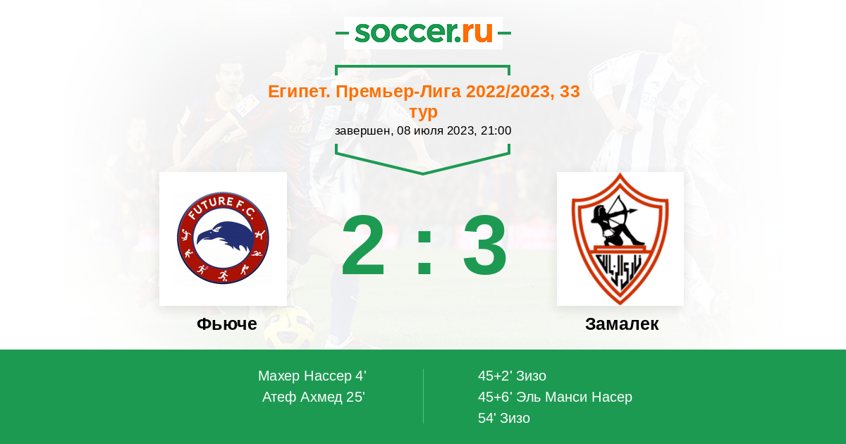 Протокол матча Фьюче против Замалек