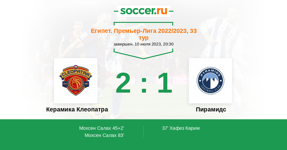 Протокол матча Керамика Клеопатра против Пирамидс