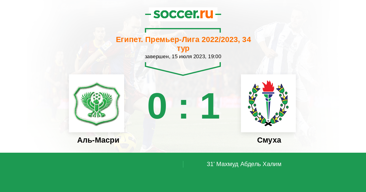 Протокол матча Аль-Масри против Смуха