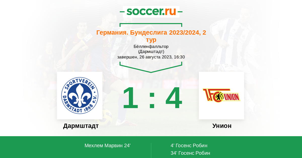Протокол матча Дармштадт против Унион