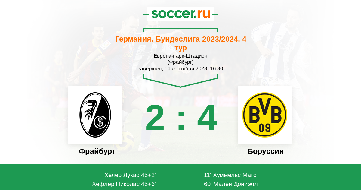 Протокол матча Фрайбург против Боруссия