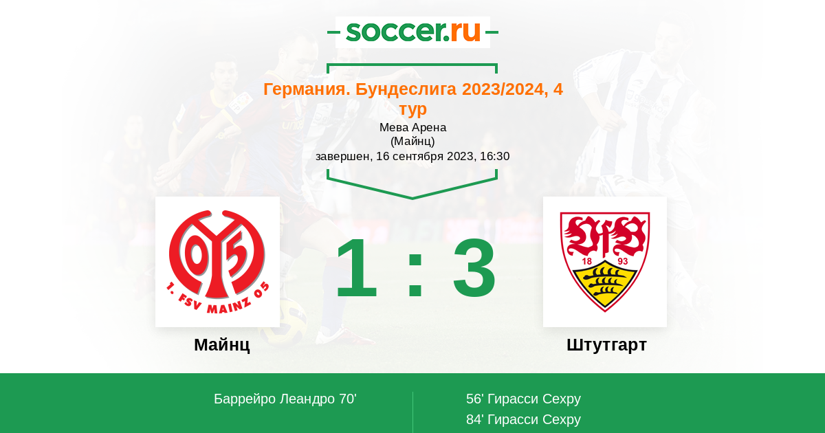 Протокол матча Майнц против Штутгарт