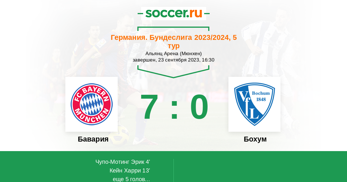Протокол матча Бавария против Бохум