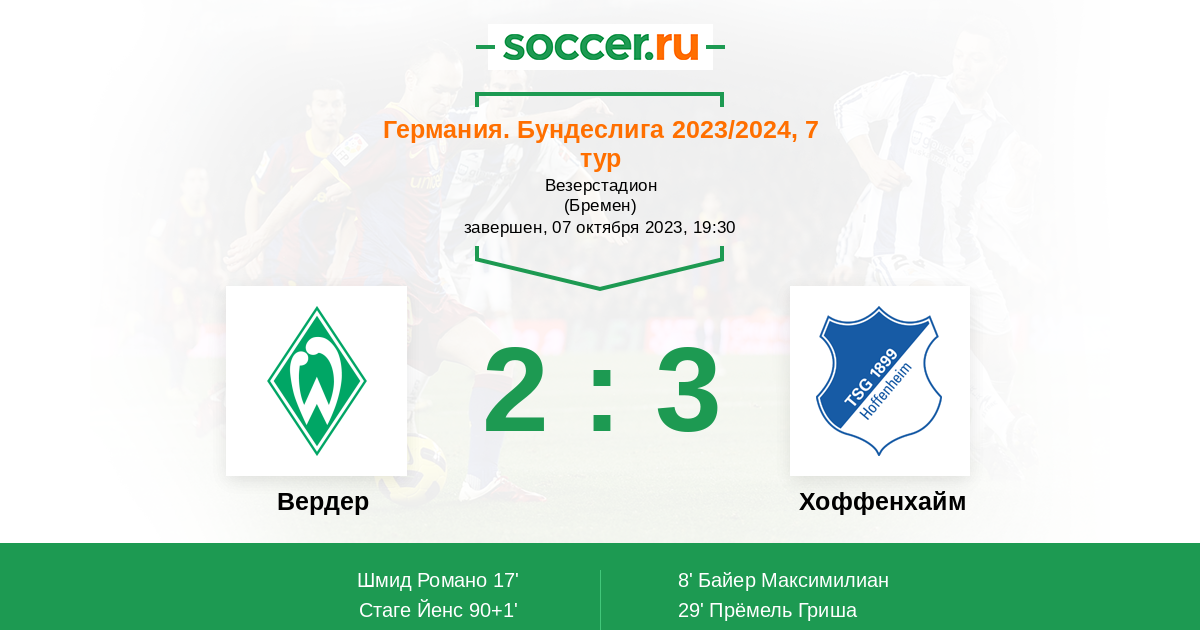 Протокол матча Вердер против Хоффенхайм