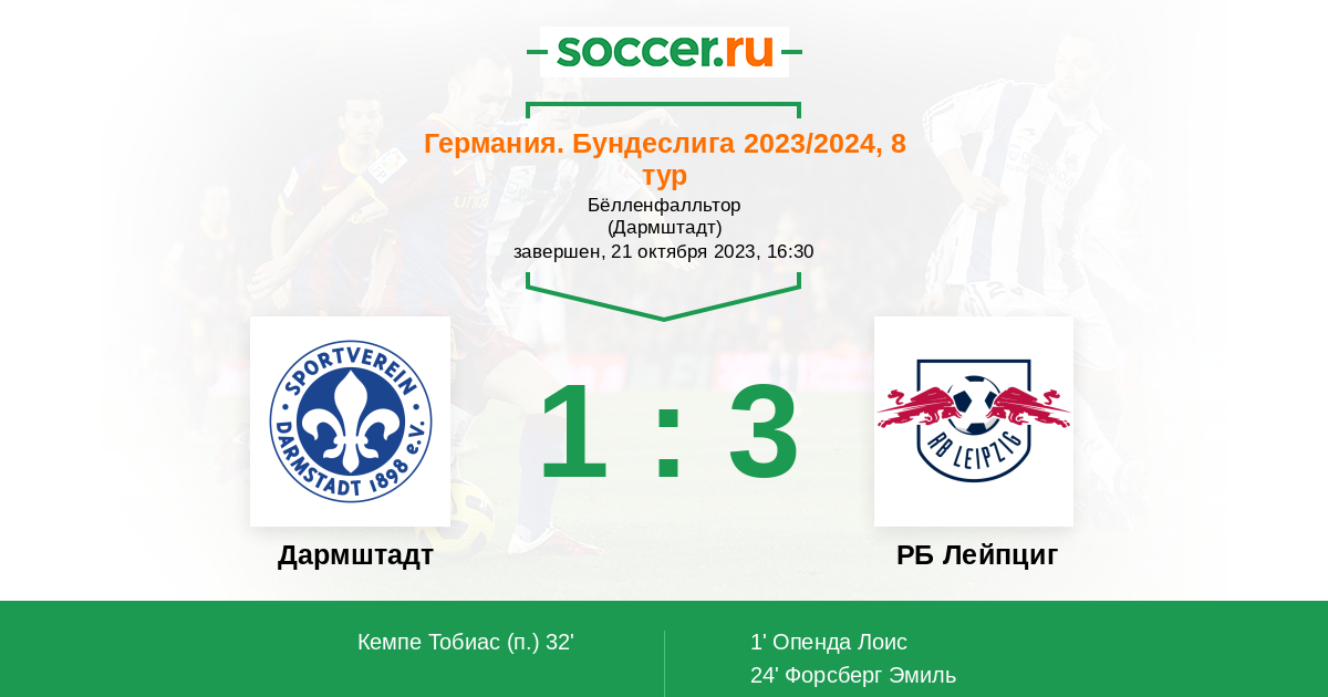 Протокол матча Дармштадт против РБ Лейпциг