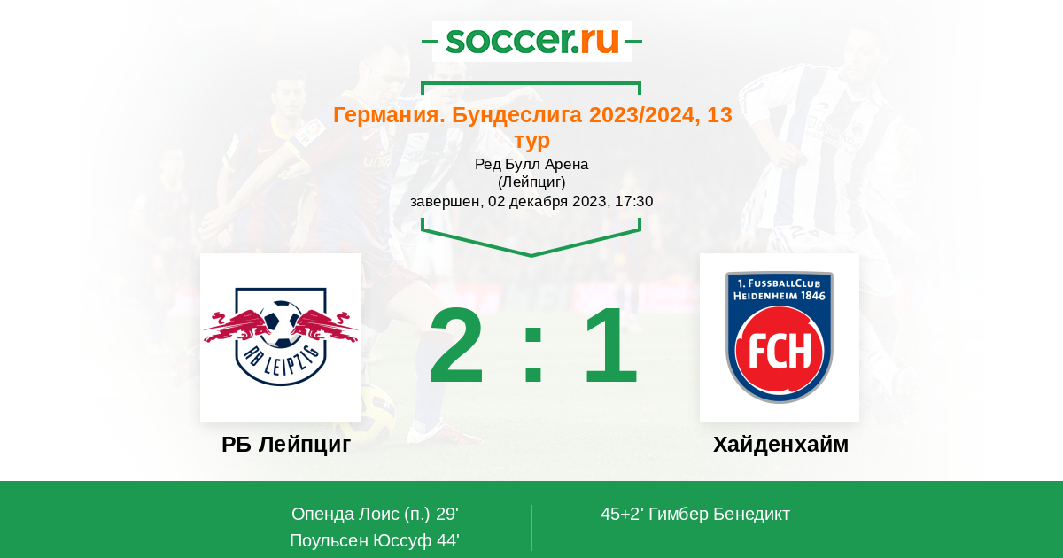 Протокол матча РБ Лейпциг против Хайденхайм
