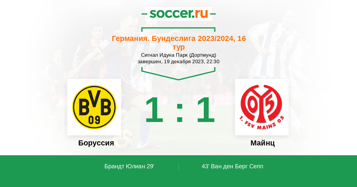 Протокол матча Боруссия против Майнц