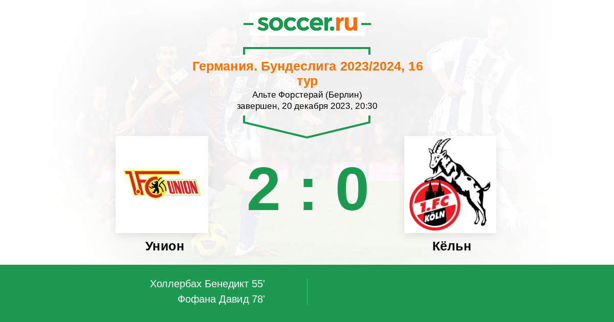 “Унион” как минимум не уступит в 16-м туре. Во-первых, “Кельн” тоже всю первую половину сезона находится в кризисе. Во-вторых, именно на выезде “козлы” не представляют из себя реальной угрозы: одна победа, две ничьи и пять поражений с общей разницей мячей — 4:16. Причем обыграл “Кельн” в гостях только “Дармштадт”, последнюю команду первенства.