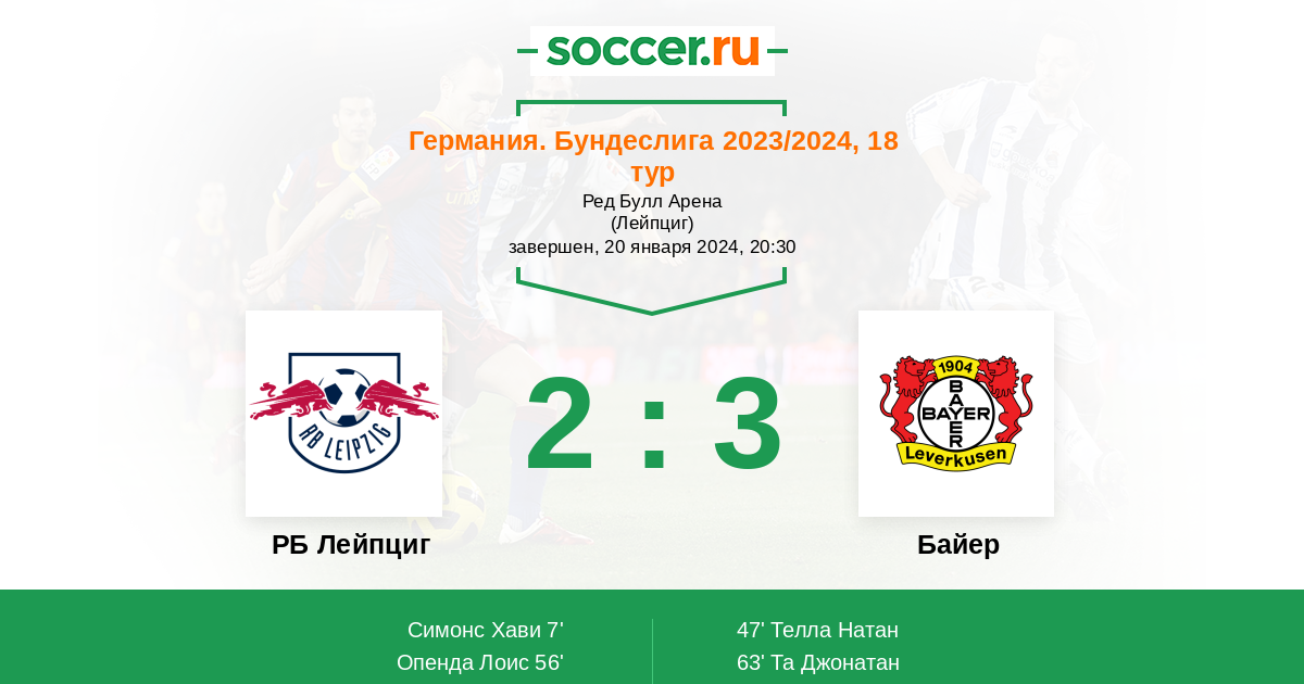 Первая встреча команд в сезоне была богатой на голы и весьма эмоциональной, но завершилась победой "Байера". В этой игре леверкузенцы также считаются фаворитами, но дома шанс набрать очки у Лейпцига всё же есть. Лейпциг постепенно теряет статус главного конкурента Баварии в борьбе за Салатницу. И этот статус переходит как раз к Байеру, где Хаби Алонсо создал по настоящему боевую команду, которая борется за чемпионский титул. Прошла половина чемпионата, а Байер продолжает идти без поражений. В то время, как Лейпциг даже в последнем туре проиграл дома. При чём проиграл, имея полное преимущество над Айнтрахтом.