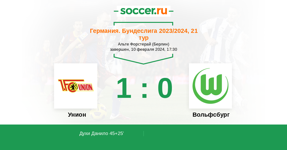 Протокол матча Унион против Вольфсбург