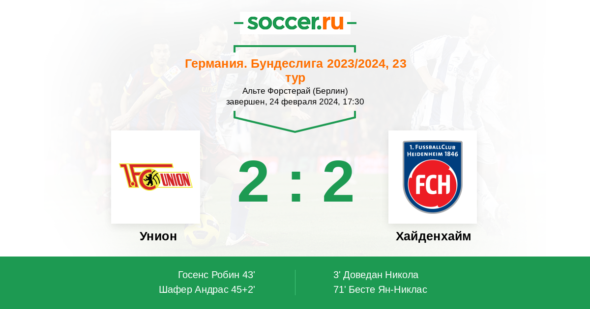 Протокол матча Унион против Хайденхайм