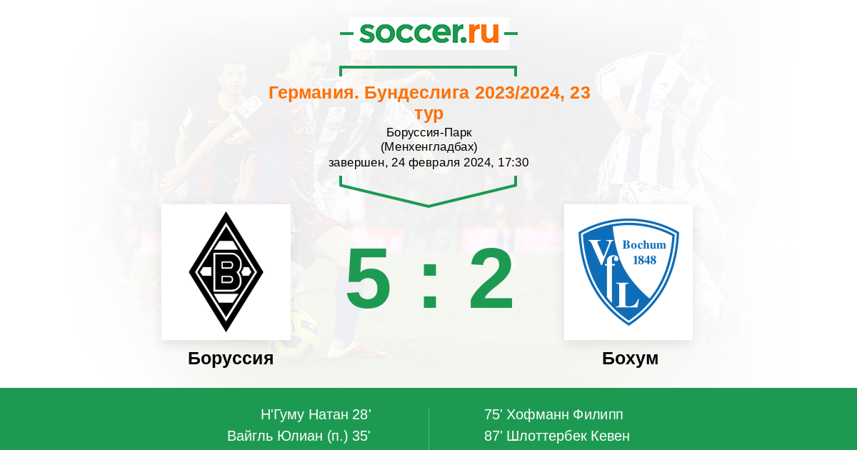 Протокол матча Боруссия против Бохум