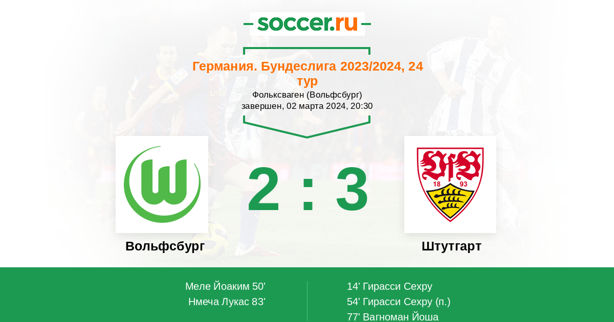 Протокол матча Вольфсбург против Штутгарт